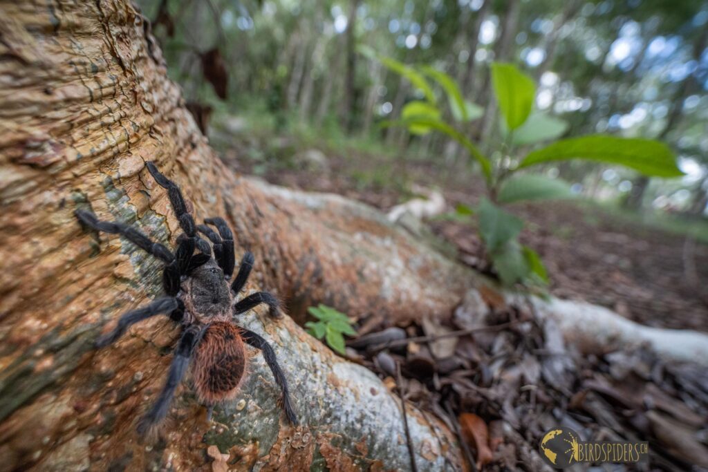 Tlitlocatl epicureanus really is an outstanding tarantula with its blackish coloration and orange red abdomen. It’s like the little sister to vagans – outstanding indeed!